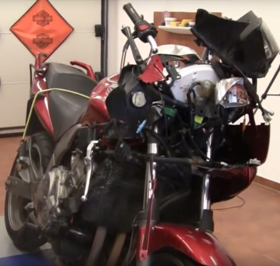 Diese CBF1000 hat es hinter sich und wird geschlachtet. Sie ist mit einem Radlader kollidiert.